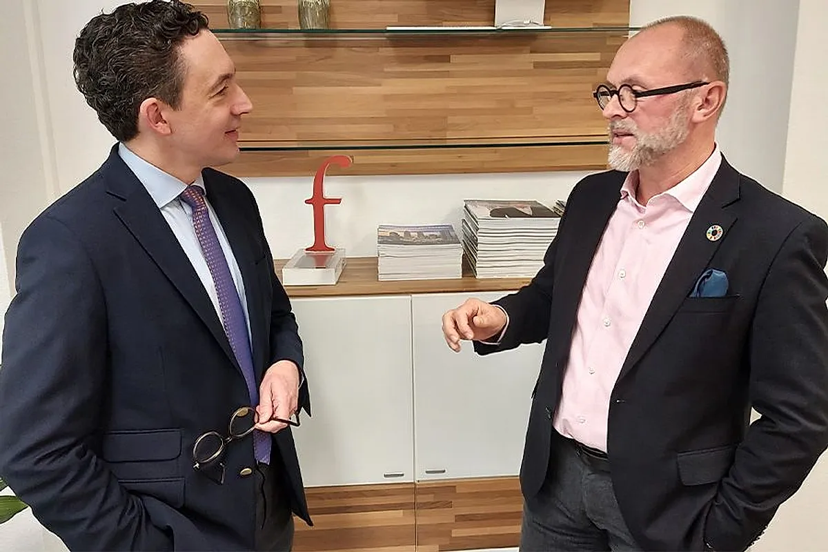 (v.l.n.r.) finanzwelt-Chefredakteur Alexander Heftrich im Gespräch mit Frank Huttel - Foto: Copyright fw