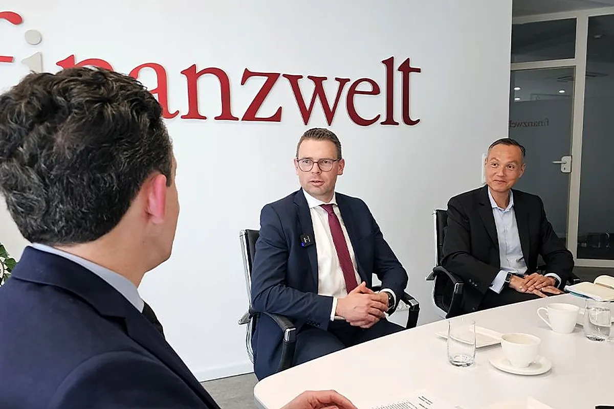 finanzwelt-Chefredakteur Alexander Heftrich im Gespräch mit Maximilian Kreitmeier und Thiemo Volkholz. Foto: © fw