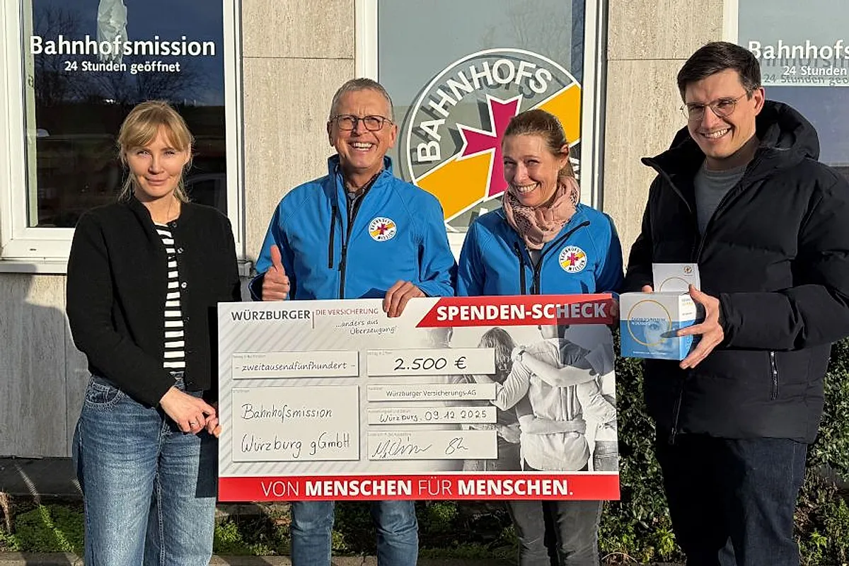 „Unsere Arbeit wird immer dringender. Immer mehr Besucher fühlen sich von akuten Krisen, ihrem Alltag, manche vom Leben überfordert. Viele erfahren sich als Menschen, die in der übrigen Lebenswelt nicht mithalten können. Für sie ist die Bahnhofsmission einer der sicheren Zugänge in ein dünner werdendes Hilfenetz. Schon jetzt zählen wir über 70.000 Hilfekontakte für das laufende Jahr, 16 Prozent mehr als im Vorjahr. Und gleichzeitig werden die öffentlichen Mittel knapper“, erklärt Michael Lindner-Jung, Geschäftsführer der Bahnhofsmission Würzburg. Die Würzburger Versicherungs-AG unterstützt dieses Engagement auch in diesem Jahr. Mitarbeitende des Unternehmens haben zusätzlich privat gespendet, sodass insgesamt 2.706 Euro überreicht werden konnten.